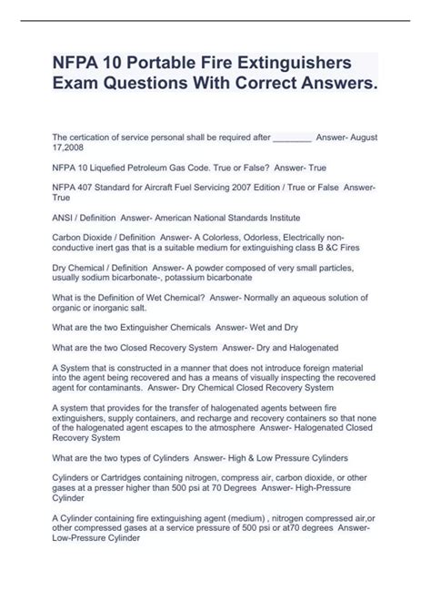 NBB - Read NFPA 10 TEST QUESTIONS Doc Open Library